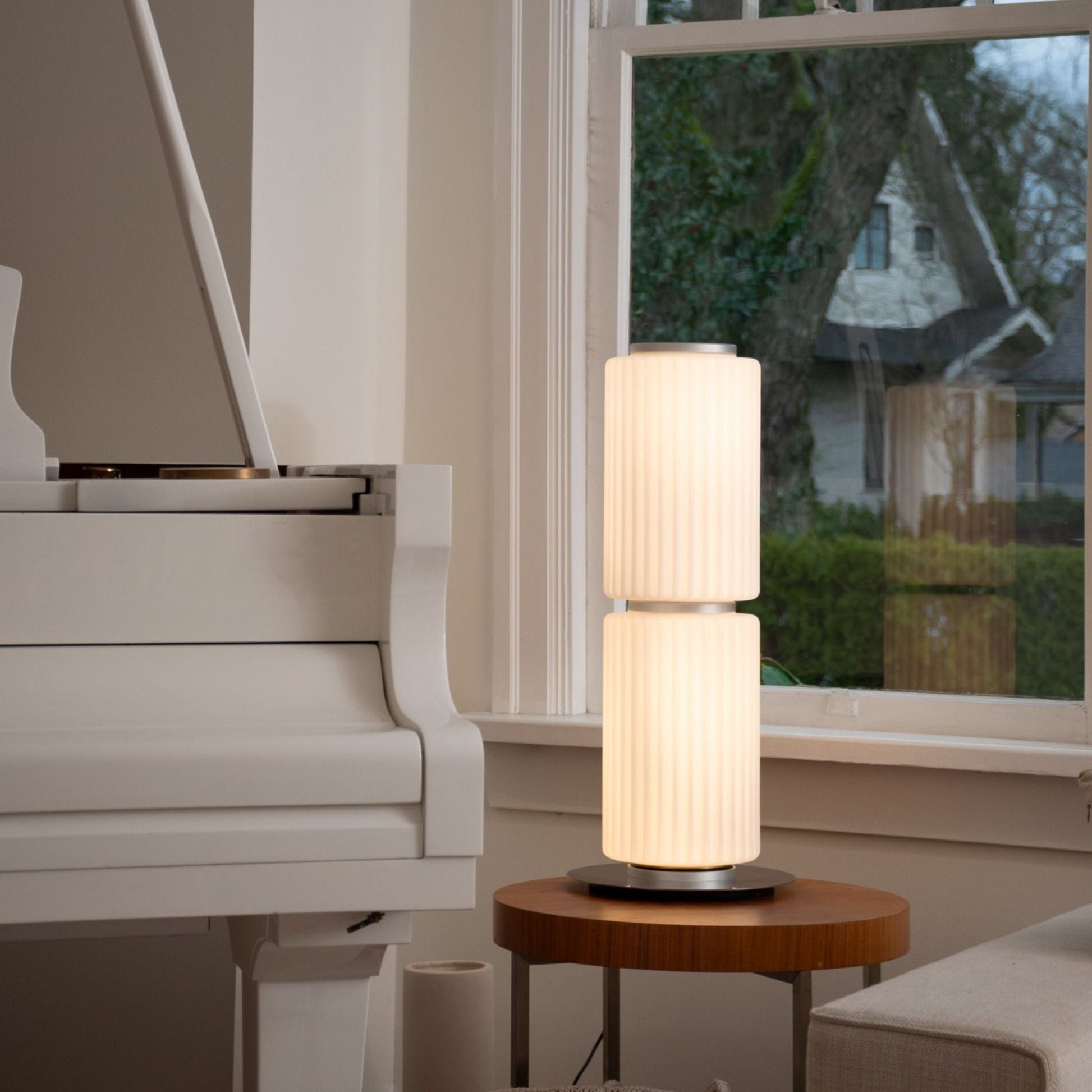 - A luxurious designer look in a compact table-lamp size.